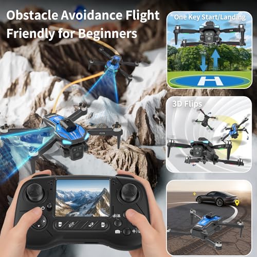 Foldable Drone with 1080P Camera & 2.8″ LCD Screen, Obstacle Avoidance Drone, Brushless Motor, FPV WiFi Quadcopter, Optical Flow Positioning, Trajectory Flight, 16min Flight Time, for Adults/Beginners