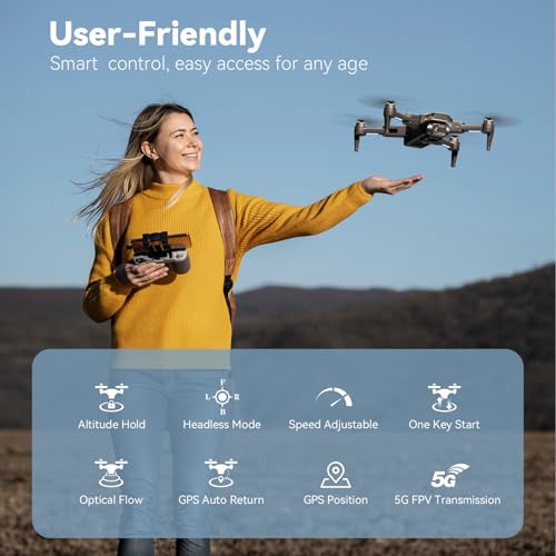 Smart and Easy to Control: This rc drone equipped with smart functions such as Optical Flow, Altitude Hold provide very precise and stable hovering; Headless Mode, One key Start, Speed Adjustment let the drone beginners control the it easily!