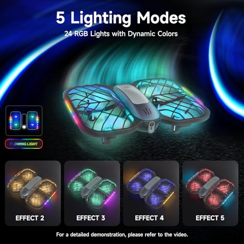 VIBRANT RGB LIGHT EFFECTS: The Uranhub M10C drone for kids features 5 dynamic RGB light modes, delivering a mesmerizing visual display that lights up the night like shooting stars. These switchable lighting effects add excitement of nighttime flying, making every flight an unforgettable experience
